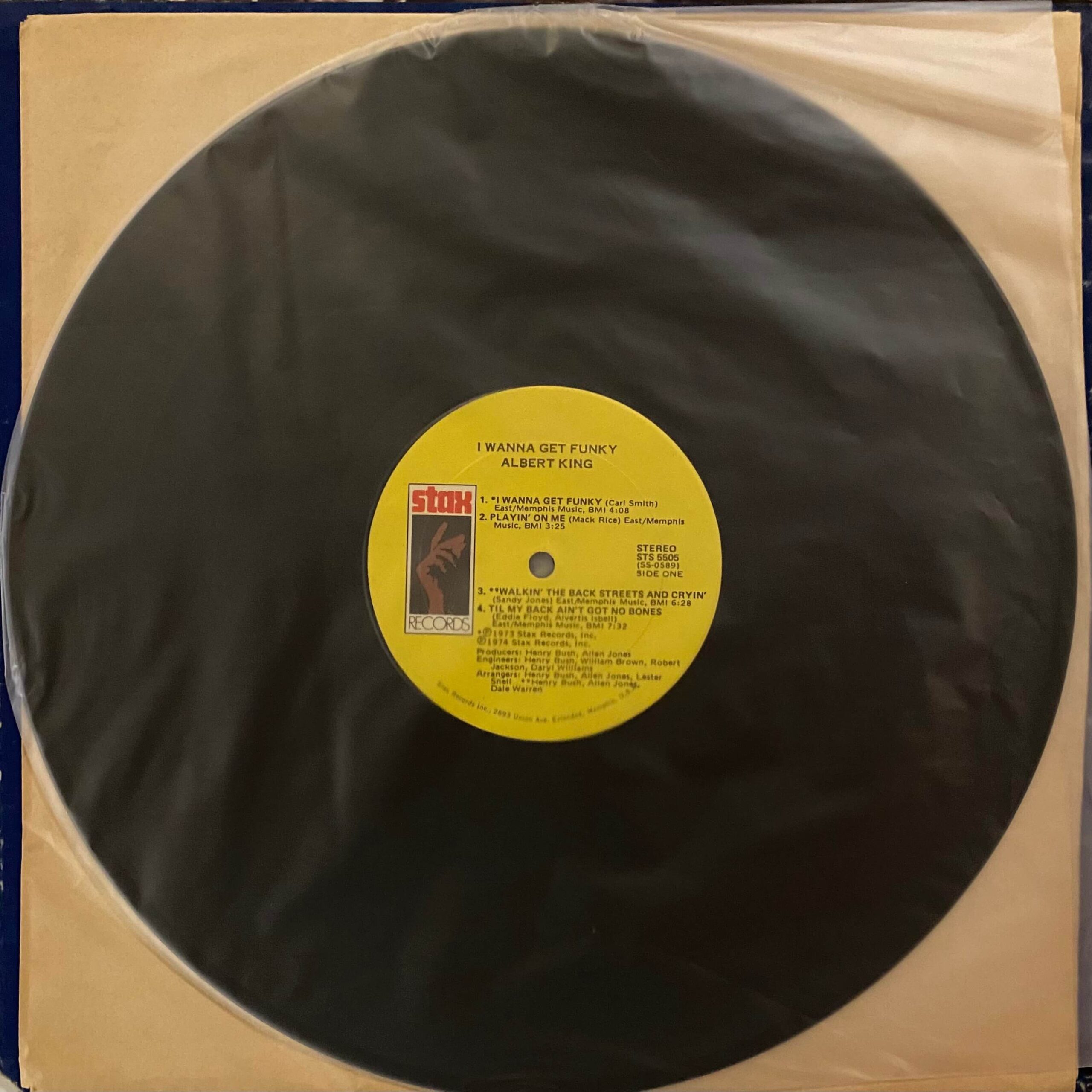 ミシシッピ出身のブルースシンガー/ギタリスト、Albert Kingが【Stax】からリリースした74年作。プロデュースは自身によるもので、Memphis Horn / Memphis Orchestraがホーン/ストリングスで参加。哀愁たっぷりのギターとホーンが響く気怠い雰囲気のA1「I Wanna Get Funky」、派手さは無いがファンクを忍ばせたA2「Playin’ On Me」、ブレイク/レアグルーヴ感あるB1「Flat Tire」などなどを収録!
