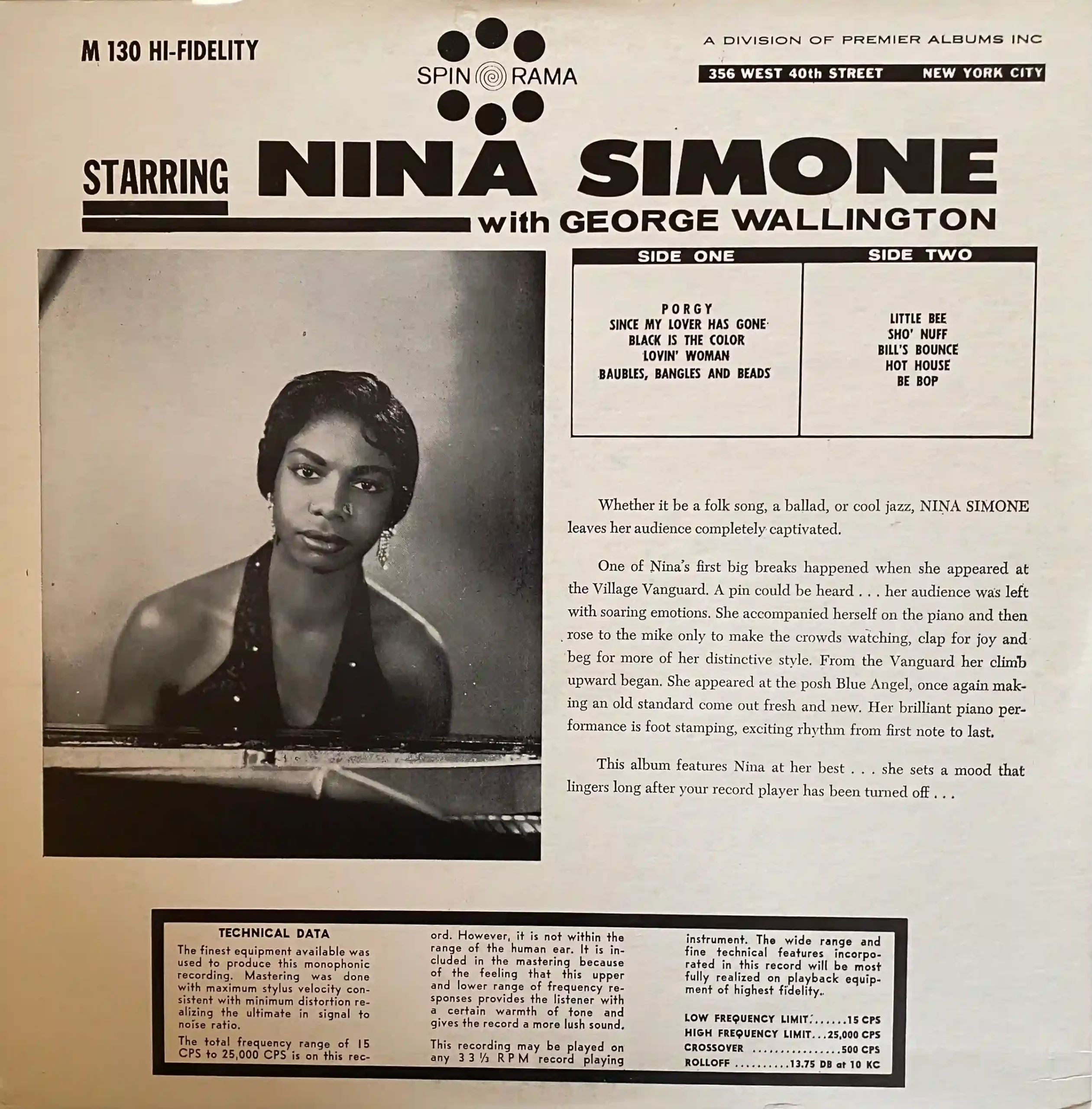 ジャズ〜ソウル界の至宝ニーナ・シモンの初期録音と、ビバップ・ピアノの才人ジョージ・ウォーリントンの演奏をカップリングした、稀な一枚です。